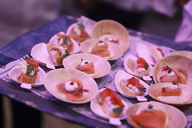 La velada también rindió homenaje a la diversidad culinaria estadounidense, presentando una selección de platillos representativos: mini cheeseburger, mini pulled pork con salsa BBQ Jack Daniels, mini tacos de pollo con salsa de mango, bocados de pechuga de pollo con salsa thai sweet chili, tostadas con burrata, prosciutto y miel de trufa, salmón ahumado con alcaparras, queso crema y eneldo sobre casabe, crostini de queso de cabra, fresa y reducción de balsámico, y rollitos primavera.